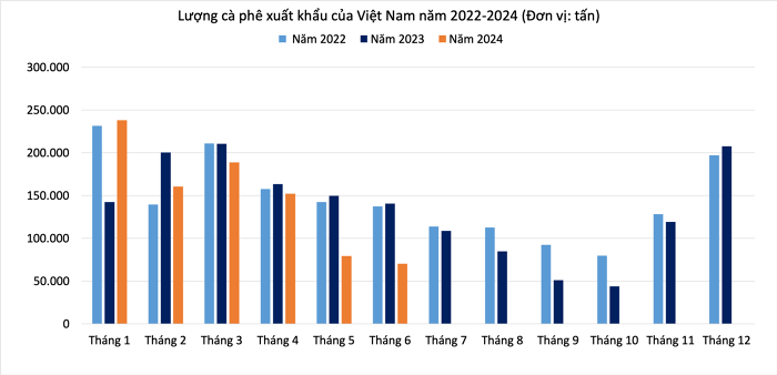 Xuất khẩu cà phê trong các tháng của quý III được dự báo sẽ giảm dần do nguồn cung dần hết. Phải đến tháng 10, khi vụ thu hoạch cà phê niên vụ 2024-2025 bắt đầu, thì nguồn cung cà phê mới tăng trở lại.