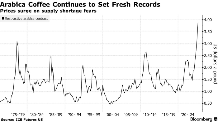 Sự thiếu hụt nguồn cung từ Brazil, quốc gia sản xuất arabica hàng đầu thế giới, tiếp tục khiến các nhà giao dịch lo lắng. Điều này giúp kéo dài đà tăng của giá cà phê và thiết lập kỷ lục mới.