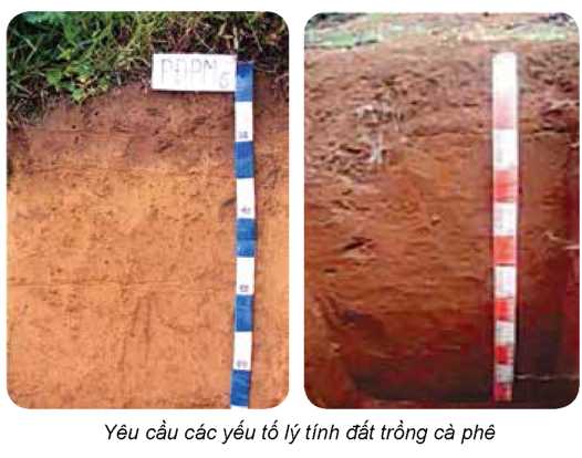 - Cây cà phê trồng trên đất bằng phẳng thuận lợi trong việc chăm sóc, thu hoạch. Nếu trồng trên đất có độ dốc từ 8 - 150 phải tuân thủ các biện pháp chống xói mòn như làm bồn, trồng cây theo đường đồng mức. Không nên trồng cà phê ở đất có độ dốc >15o.
