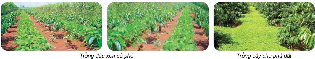 - Cây trồng xen ngắn ngày: Có tác dụng cải tạo đất. Có thể trồng xen giữa 2 hàng cà phê các cây đậu đỗ, lạc dại... để tăng thu nhập và lấy tàn dư cây sau thu hoạch để tủ gốc cho cà phê.