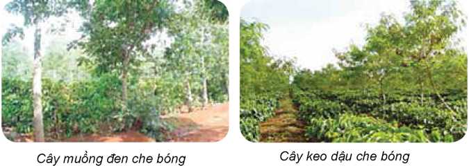 Cây che bóng tạm thời: Hầu hết các vườn cà phê đều không có cây che bóng sẵn có, phải mất vài năm (3-4 năm) cây che bóng mới trưởng thành, cung cấp được bóng râm. Có thể trồng các cây che bóng tạm thời (cây họ đậu) ở các vườn mới tái canh.