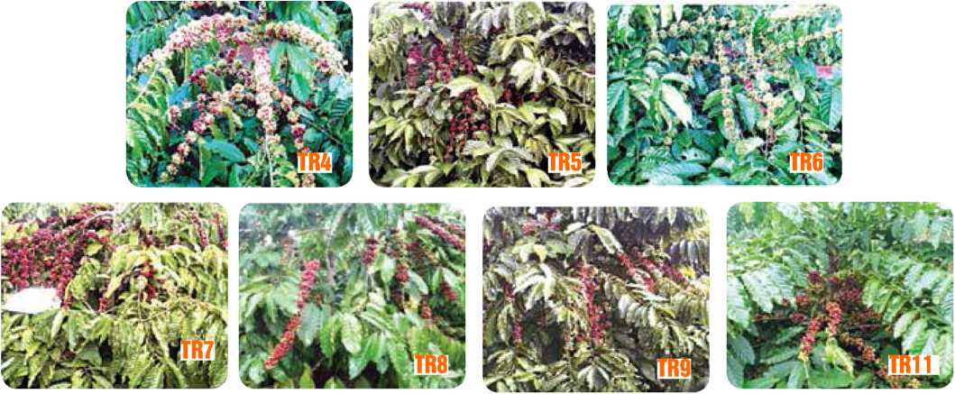 - Một số giống cà phê chọn lọc đã được Bộ Nông nghiệp và Phát triển nông thôn công nhận: TR4, TR5, Tr6, TR7, tR8, TR9, TR11, TR12, TR13; giống lai tổng hợp TRS1 (càphê vối), TN1, TN2 (cà phê chè).